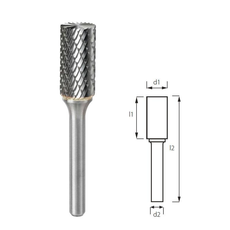 Борфреза твердосплавная цилиндрическая с торцевыми зубьями. Подходит для прямых шлифовальных машин как с электрическим, так и с пневматическим приводом. Предназначена для обработки радиусных пазов, разделки кромок, снятия фасок и заусенцев.