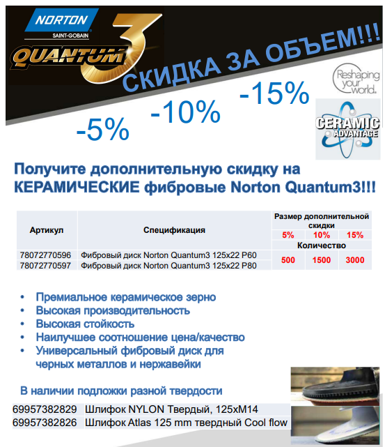 Дополнительные скидки на фибровые диски Norton (керамика)