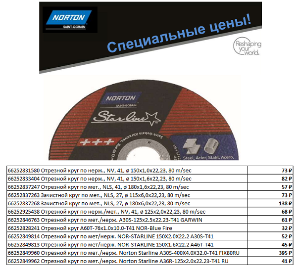Распродажа отрезных кругов Norton! Диаметр от 115 до 400 мм!