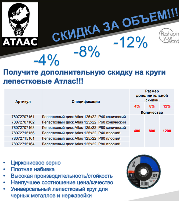 Скидка на лепестковые диски Atlas до 12%